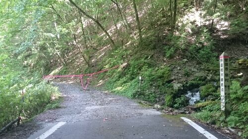 ゲート手前にピンクテープが張ってあったので、ここに車を停めて登山の準備。 いつも車を停めるところ ここからしか登ったことがないので今回は奥のCコースから登る Cコースは人工林の中を進むので味気無い。 登山道の合流点。 鹿がアチコチに居る。10メート…